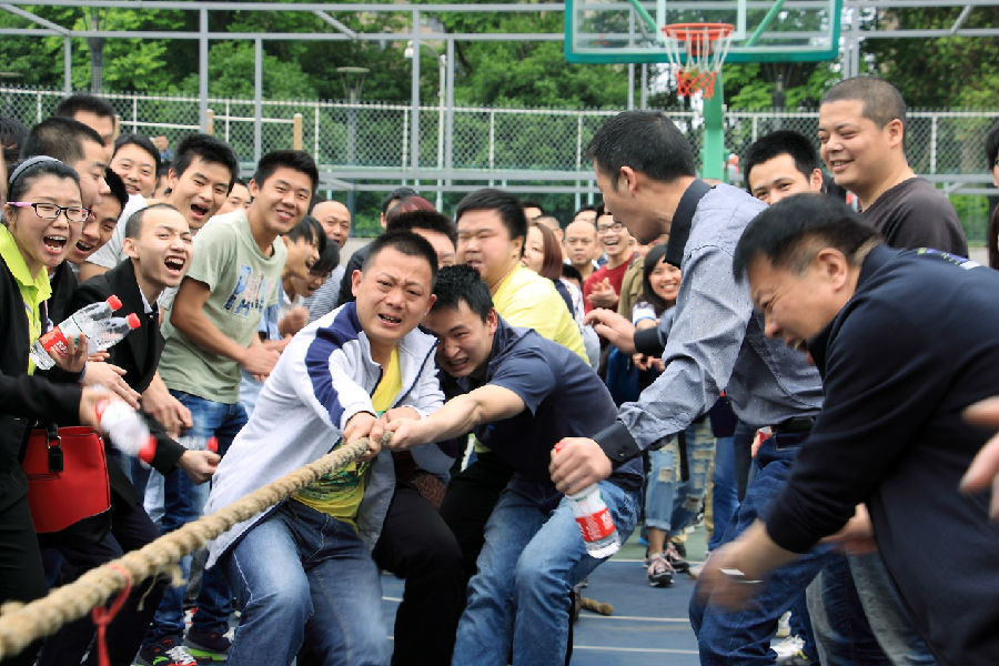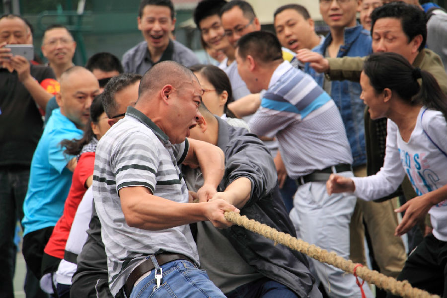 伴随阵阵呐喊助威的加油声,拔河比赛拉开了序幕,各部门参赛队员努力拼搏,无论是场上还是场下,气氛都异常热烈,富有节奏的呐喊声、加油声,充斥在体育场上空,久久回荡。尤其是在胜负难分的时刻,大家毫不退却,咬紧牙关,坚持到底。赛场上的队员个个斗志昂扬,用他们的汗水为我们讲述了团结的含义,他们顽强的毅力与拼搏的精神让每一个人感动。现场拉拉队的员工们个个热情高涨,呐喊助威给比赛增添了一抹亮色,每一声呐喊都带来一股力量!